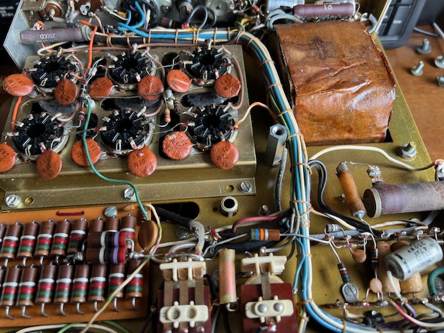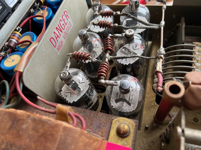 使うとすれば、電源回路部の電解コンデンサやセラミックコンの交換と空冷ファンを追加する事が最低の補修条件となります。それと、回路図を観てみるとベタコンG.Gでは無くスクリーン・グリッドに電圧が加わっていましたのでGGに変更するのと入力同調回路を入れる事が必要となりそうです。ちなみに、この球は6KD6より熱損失は大きいようです。